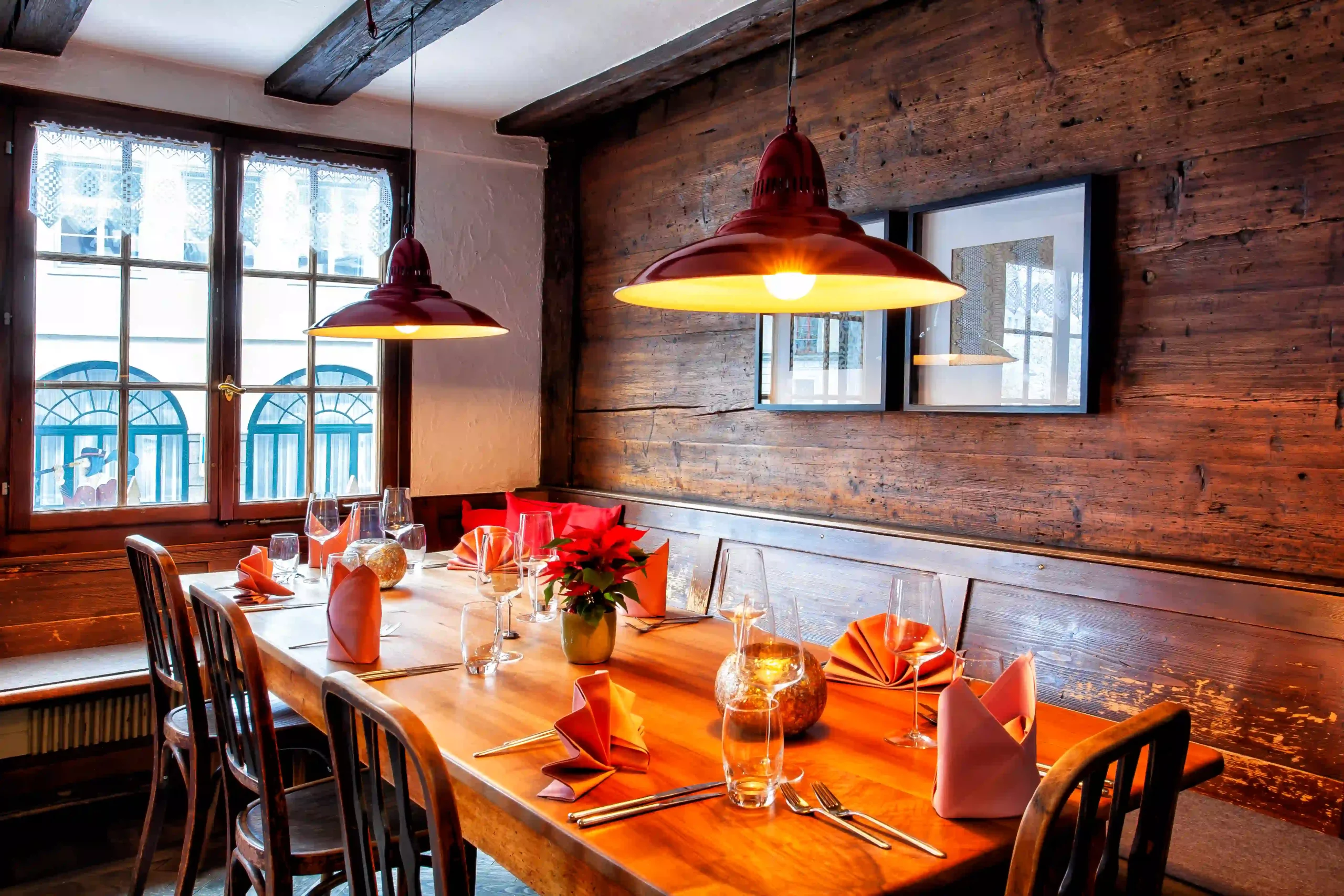 Die Alte Post besteht aus drei Räumlichkeiten. Im Erdgeschoss unsere gemütliche Champagner- und Cafebar. Im 1. Stock die St. Galler Gaststube, und im 2. Stock das Krüsi Stübli. Im Sommer kann auch in unserem Strassencafe geschlemmt werden. An allen Orten gibt es aber die selben Tafelfreuden.